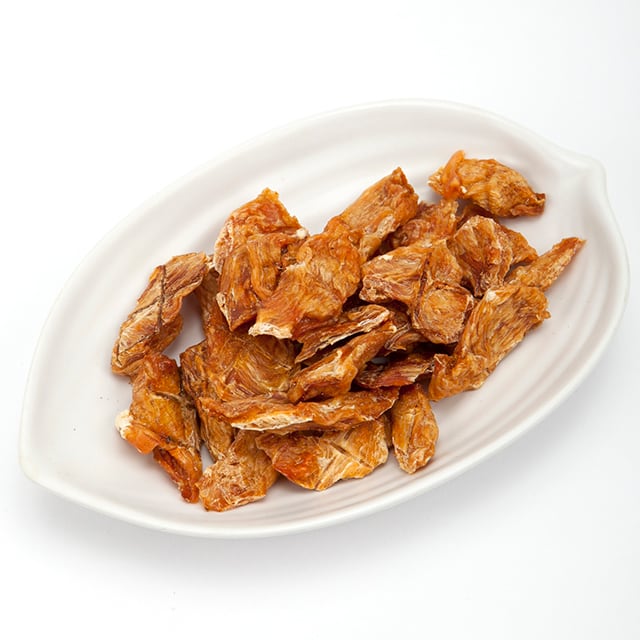 小型犬にも食べやすいよう、一口カットにしました。葉酸、タンパク質、アミノ酸がたっぷり含まれています。高タンパク、低カロリーだから安心です!!